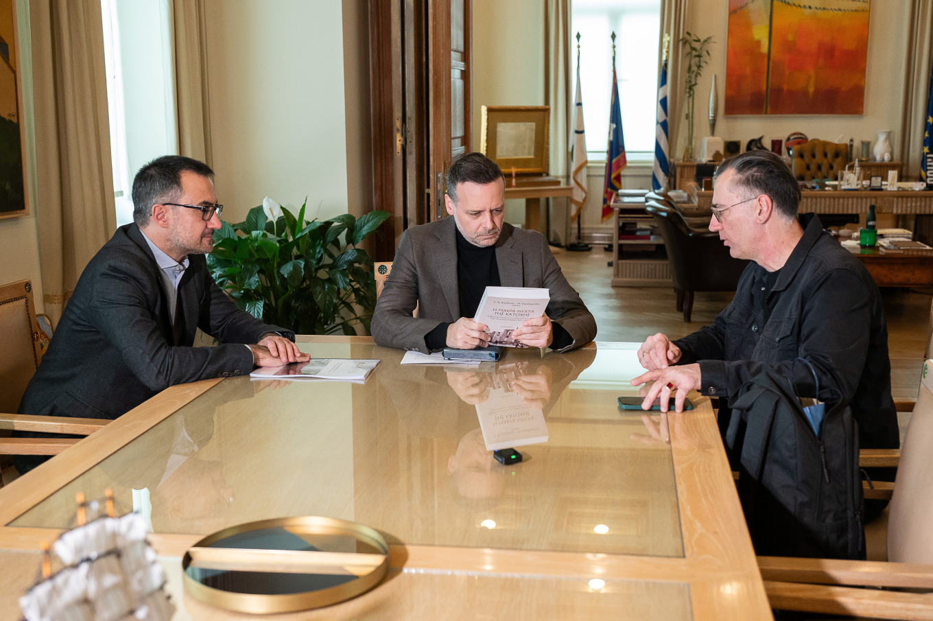 Ο ιστορικός Μενέλαος Χαραλαμπίδης ευχαρίστησε τον Δήμαρχο Αθηναίων για την ουσιαστική συνάντηση και υπογράμμισε: «Στόχος του Μουσείου Εθνικής Αντίστασης θα είναι να λειτουργήσει ως ένα πολυεργαλείο. Θα μπορεί επίσης να είναι ο φορέας ο οποίος, μέσα από ερευνητικά προγράμματα, να τεκμηριώσει επιστημονικά τις ανθρώπινες απώλειες και τις υλικές καταστροφές που είχαμε κατά τη διάρκεια του Β' Παγκοσμίου Πολέμου και άρα να δώσει στέρεα επιχειρήματα σε οποιαδήποτε νομική, οικονομική ή πολιτική διεκδίκηση έχει το ελληνικό κράτος από το αντίστοιχο γερμανικό».