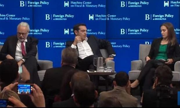Πιθανώς όχι και τόσο σίγουρος για την άνεση του Έλληνα πρωθυπουργού με την αγγλική γλώσσα μετά την ομιλία του στο Brookings Institution, ο συντονιστής των ερωτήσεων που ακολούθησαν την παρουσίαση του κυρίου Τσίπρα, David Wessel, Διευθυντής του Κέντρου Νομισματικής και Δημοσιονομικής Πολιτικής Χάτσινς του Ινστιτούτου (Hutchins Center on Fiscal and Monetary Policy), απευθύνθηκε προς τον Έλληνα πρωθυπουργό ρωτώντας τον αν αισθανόταν άνετα με τις ερωτήσεις στα αγγλικά, ή επιθυμούσε να χρησιμοποιήσει το σύστημα αυτόματης μετάφρασης.