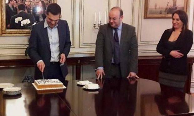 Την πρωτοχρονιάτικη πίτα έκοψε χθες στο Μέγαρο Μαξίμου ο πρωθυπουργός Αλέξης Τσίπρας μαζί με τους συνεργάτες του.