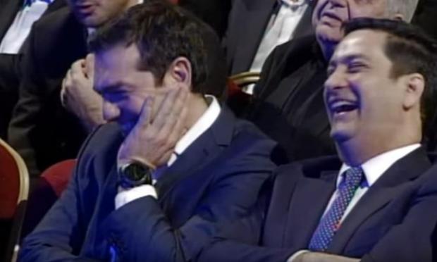 Όλοι και κυρίως ο Πρωθυπουργός ξέσπασαν σε γέλια με την κάμερα να εστιάζει στον Αλέξη Τσίπρα και να καταγράφει τις αντιδράσεις του.