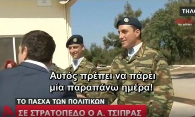Πάσχα με τους φαντάρους του στρατοπέδου Διοίκησης Άμυνας της Τήλου έκανε ο πρωθυπουργός, Αλέξης Τσίπρας. Συνομίλησε μαζί τους και όπως ορίζει το έθιμο τσούγκρισε κόκκινα αυγά.
