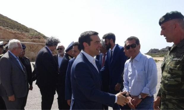 Νωρίς το μεσημέρι της Τρίτης προσγειώθηκε στο Καστελόριζο το ελικόπτερο, στο οποίο επέβαινε ο πρωθυπουργός Αλέξης Τσίπρας. Μαζί του ήταν ο υπουργός Ναυτιλίας και Νησιωτικής Πολιτικής Παναγιώτης Κουρουμπλής, καθώς και ο αναπληρωτής υπουργός Υγείας Παύλος Πολάκης.