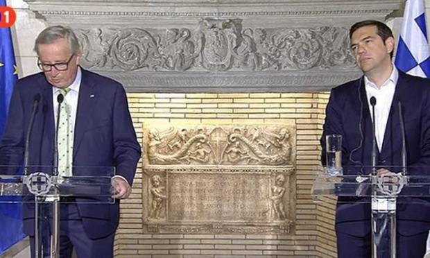«Η Ελλάδα», συνέχισε, «θα πρέπει να συνεχίσει το πρόγραμμα. Είμαι ικανοποιημένος με τον τρόπο που η Ελλάδα προχωρά και τηρεί τους κανόνες. Η θυσίες αποδίδουν, η ανάπτυξη επέστρεψε, η ανεργία έχει μειωθεί σημαντικά». Το έλλειμμα έχει μετατραπεί σε πλεόνασμα, τόνισε ο κ. Γιούνκερ, υπογραμμίζοντας ότι η χώρα μας έχει τη μεγαλύτερη απορρόφηση ευρωπαϊκών κονδυλίων. Εμφανώς καταβεβλημένος από τη ζέστη ο Ζ.Κ. Γιούνκερ σκούπισε το πρόσωπό του και κάπου εκεί ολοκλήρωσε τις δηλώσεις του λέγοντας: «Αυτά…»