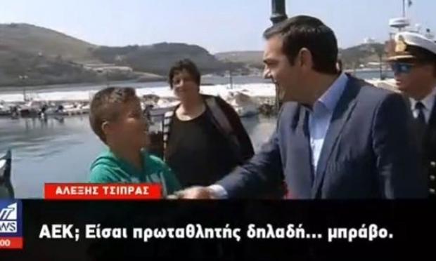Εν συνεχεία ο Αλέξης Τσίπρας περπάτησε στην προκυμαία του νησιού. Συνομίλησε με ψαράδες. Δεν έλειψαν οι ποδοσφαιρικές συζητήσεις με έναν μικρό να του λέει πως υποστηρίζει την ΑΕΚ και ο ίδιος ο Αλέξης Τσίπρας να χαμογελά και να του λέει πως είναι πρωταθλητής, ενώ ακολούθησε και βόλτα στην αγορά.