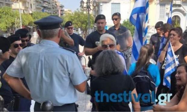 Συγκέντρωση διαμαρτυρίας μπροστά στο Ιερό Ναό Αγίου Δημητρίου πραγματοποιούν πολίτες που αντιτίθενται στη συμφωνία των Πρεσπών μεταξύ Ελλάδας και Σκοπίων.