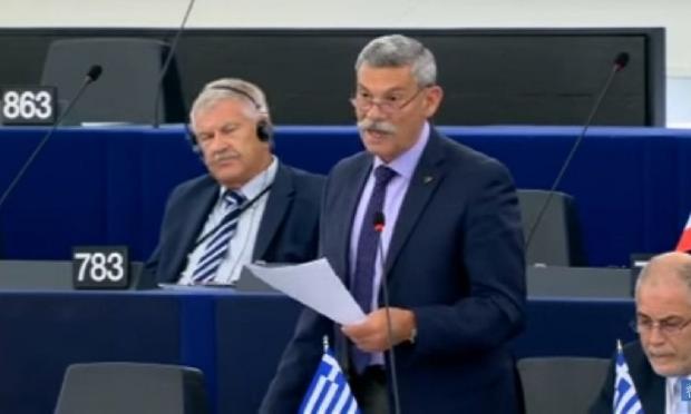 Την Τρίτη 11 Σεπτεμβρίου 2018, κατά τις εργασίες της Ολομέλειας του Ευρωπαϊκού Κοινοβουλίου, στο Στρασβούργο, ο Στρατηγός Ελευθέριος Συναδινός, Ευρωβουλευτής της Πατριωτικής Ριζοσπαστικής Ένωσης, παρενέβη στη συζήτηση με θέμα το μέλλον της Ευρώπης, παρουσία του πρωθυπουργού της Ελλάδας κ. Τσίπρα και τόνισε ότι, η κυβερνητική του παρουσία επιβεβαιώνει τον αριστερόστροφο φασισμό και εθνομηδενισμό καθόσον υπέγραψε συμφωνίες καταστροφικές για την Ελλάδα υποκύπτοντας σε απειλές και συμφέροντα, λειτουργώντας με κυνισμό και ιδιοτέλεια, αποδομώντας ένα λαμπρό έθνος και παραδίδοντας όνομα, ιστορία και πολιτισμό, αυτό των Μακεδόνων.