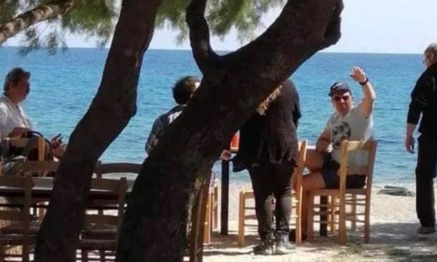 Σε χαλαρή διάθεση, ο Αλέξης Τσίπρας εικονίζεται με υψωμένο το αριστερό του χέρι στη φωτογραφία που δημοσιεύει αποκλειστικά το protothema.gr. Ισως για να ζητήσει κάτι από τον σερβιτόρο, ίσως επειδή κάνει νόημα σε κάποιον άλλο φίλο ή συντροφό του. Απέναντι από τον Αλέξη Τσίπρα -που έχει πιάσει τη μία κορυφή του τραπεζιού- βρίσκεται ο Παύλος Πολάκης και στα αριστερά του πρωθυπουργού κάθεται ένα άλλο πρόσωπο το οποίο δεν διακρίνεται. Πίσω από τον κ. Τσίπρα βρίσκεται ένας από τους σερβιτόρους της παραλιακής ταβέρνας, που φαίνεται σχεδόν άδεια.