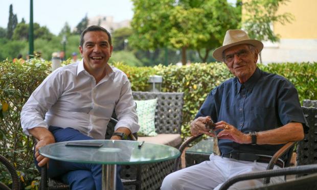Αλέξης Τσίπρας και Βασίλης Βασιλικός ήπιαν τον καφέ τους στην «Αίγλη» του Ζαππείου, με θέα την Ακρόπολη και είχαν μια σύντομη συζήτηση για την πολιτική και τις επερχόμενες εκλογές, από τη ματιά του 85χρονου συγγραφέα.