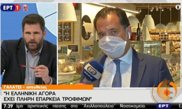 Με ευχαριστίες και συγχαρητήρια προς το προσωπικό των σούπερ μάρκετ, που δουλεύει εντατικά και με διευρυμένο ωράριο από αύριο, ξεκίνησε ο υπουργός Ανάπτυξης Άδωνις Γεωργιάδης τις δηλώσεις του από σούπερ μάρκετ, το οποίο επισκέφθηκε σήμερα το πρωί φορώντας μάσκα.