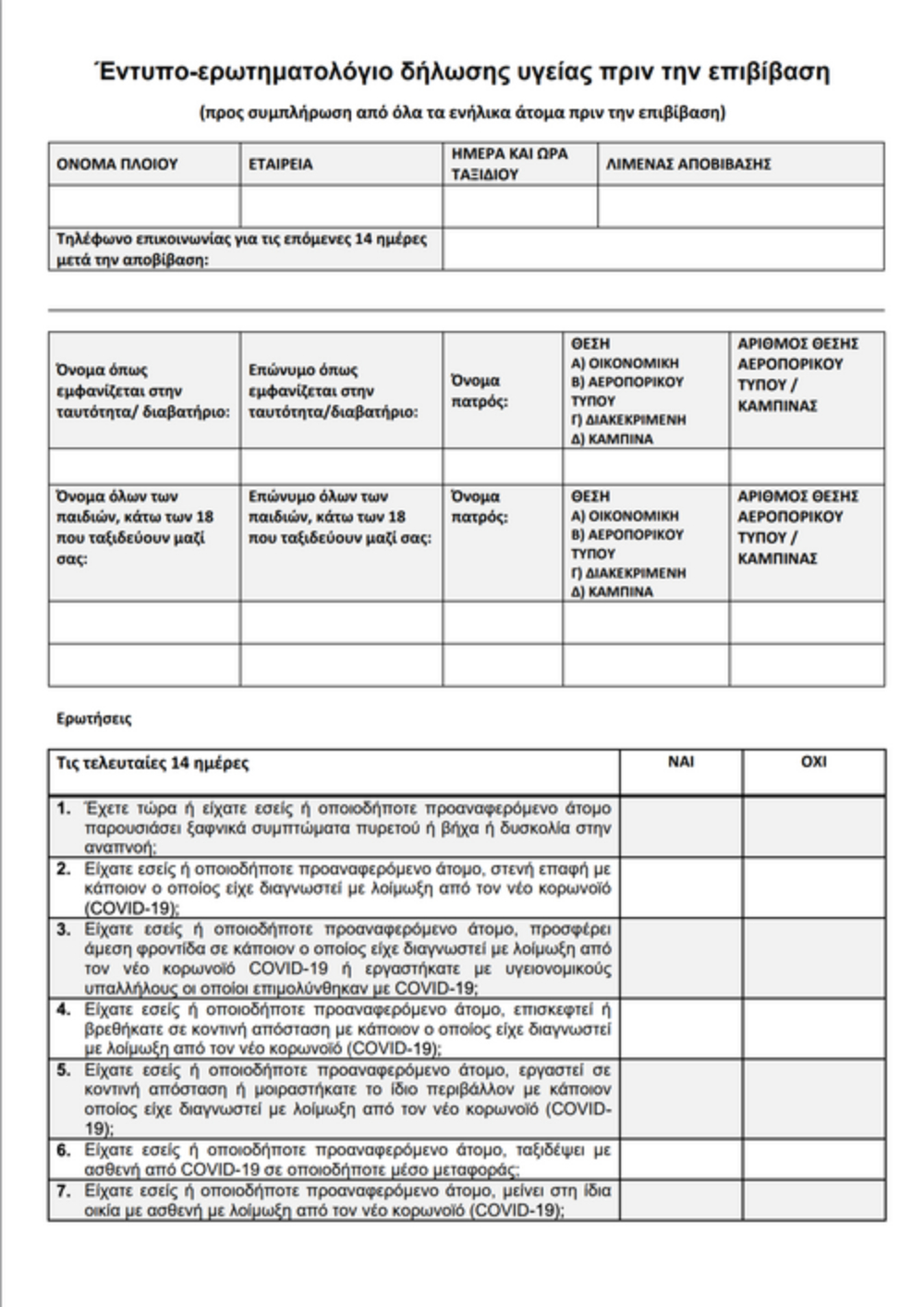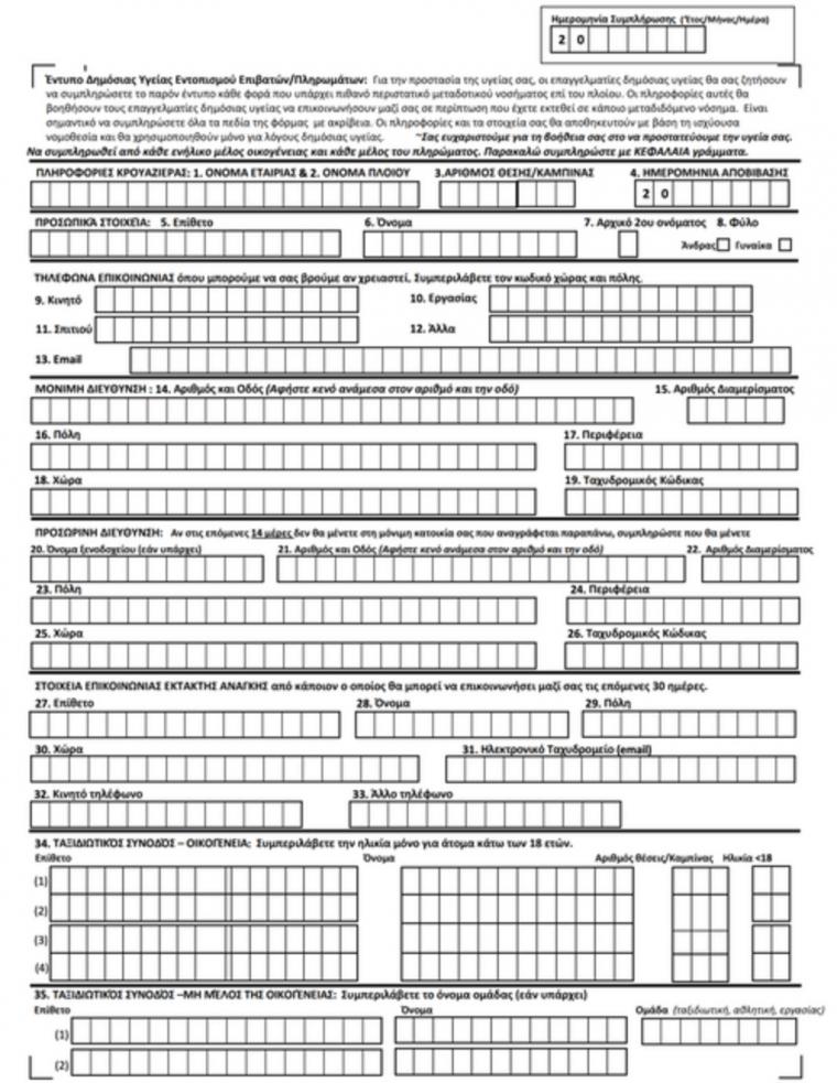 Οι επιβάτες των πλοίων της ακτοπλοΐας που πραγματοποιούν ταξίδι διάρκειας μεγαλύτερης των 30 λεπτών, θα πρέπει πριν την επιβίβαση τους στο πλοίο να συμπληρώνουν ειδικό ερωτηματολόγιο.