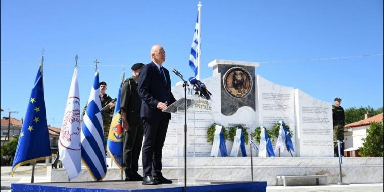 «Η ελευθερία δεν είναι δεδομένη, η ανεξαρτησία δεν είναι δεδομένη, διαφυλάσσονται και διαφυλάσσονται με αγώνα, με προσπάθεια και πολλές φορές με το ύψιστο αγαθό, την ανθρώπινη ζωή», υπογράμμισε ο κ.Δένδιας, κατά την ομιλία του στην τελετή αποκαλυπτηρίων του Μνημείου για τους πεσόντες της 3ης Ελληνικής Ορεινής Ταξιαρχίας στη Μάχη του Ρίμινι, στην Ιταλία, τον Σεπτέμβριο του 1944, που οργάνωσε ο Δήμος Ορεστιάδας στην πλατεία του χωριού Καβύλη.