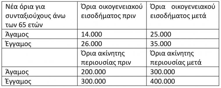 Διεύρυνση ορίων εισοδήματος και ακίνητης περιουσίας