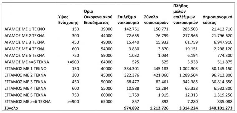 Κόστος: 240 εκατ. ευρώ – Δικαιούχοι: 975.000 νοικοκυριά