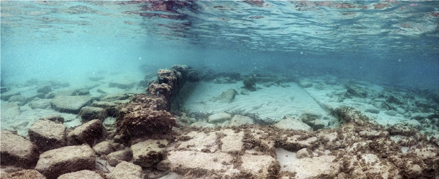 Λείψανα ποντισμένων κτηρίων στον βυθό του όρμου του Πόρου Ελούντας