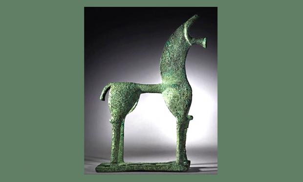 Πρόκειται για το χάλκινο ειδώλιο ίππου, που χρονολογείται στον 8ο αι. π.Χ. και το οποίο επρόκειτο να δημοπρατηθεί από τον οίκο Sotheby΄s στη Νέα Υόρκη στις 14 Μαΐου 2018, με εκτιμώμενη τιμή εκκίνησης μεταξύ $150.000 και $250.000.