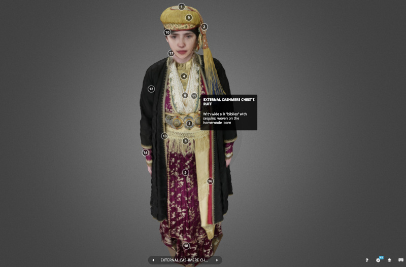 Το μαφέσι -το μεταξωτό τετράγωνο ύφασμα που το δίπλωναν σχηματίζοντας ένα λεπτό ζωνάρι- τα κισμιρένια μανικάκια,το σπάνιο βελούδο και το κεφαλοκάλυμμα με φούντα «μάγεψαν» όλον τον κόσμο, με αποτέλεσμα η ψηφιακή παραδοσιακή φορεσιά της περιοχής να διακριθεί.