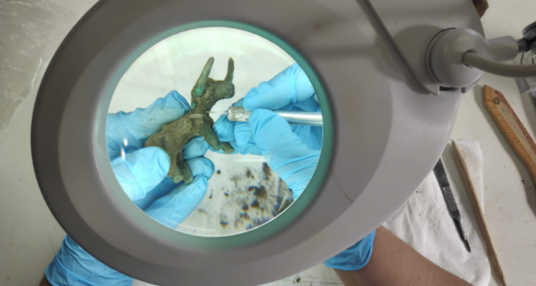 Στο φως του ήλιου της Ολυμπίας ήρθε ένα χάλκινο ειδώλιο ταύρου κατά τη διάρκεια αυτοψίας που διενεργούσε ομάδα επιστημόνων αποτελούμενη από στελέχη Κεντρικών Υπηρεσιών του Υπουργείου Πολιτισμού και της Εφορείας Αρχαιοτήτων Ηλείας.