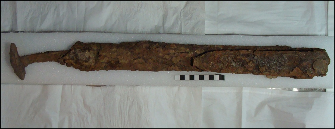 «Είναι σπάνιο να βρίσκεται οπλισμός αυτής της περιόδου μέσα σε ανασκαφικά συμφραζόμενα και μάλιστα του ελλαδικού χώρου. Τα περισσότερα αντίστοιχα ευρήματα που έχουμε είναι από χώρες της βαλκανικής και της δυτικής Ευρώπης», εξηγεί η κ. Παϊσίδου. Πιθανολογείται ότι πρόκειται για γότθο στρατιώτη, καθώς το Βυζάντιο απασχολούσε γότθους μισθοφόρους ειδικά τις τελευταίες δεκαετίες του 4ου αιώνα και μετά.