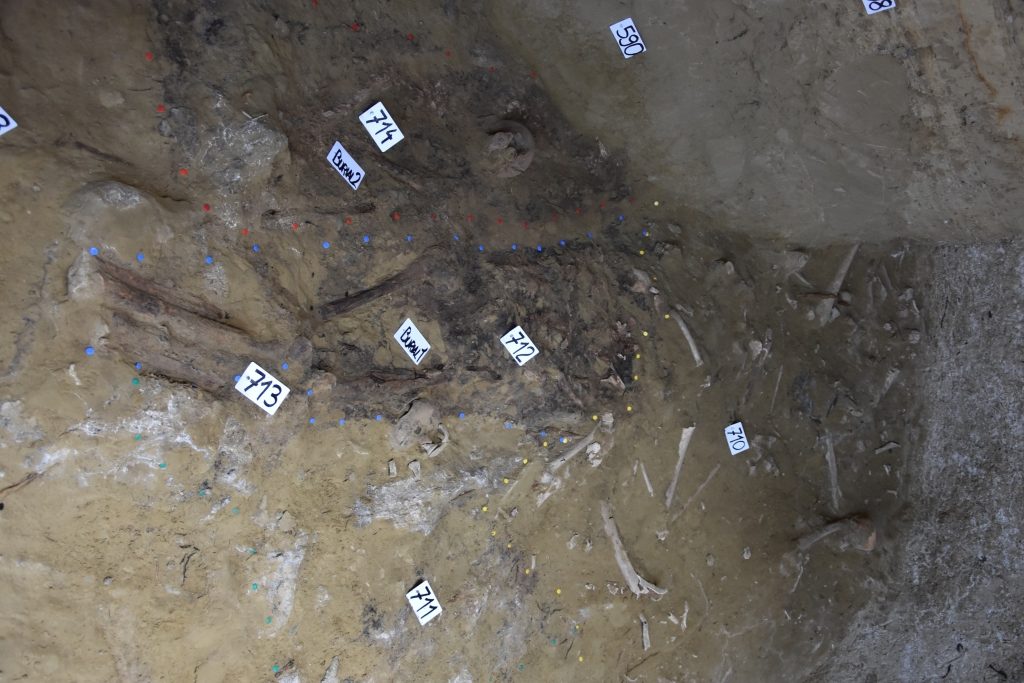 Ο θάλαμος του τάφου 8, σχήματος ορθογώνιου παραλληλόγραμμου, ο οποίος ερευνήθηκε φέτος, παρουσίασε μια σύνθετη στρωματογραφία. Στο πρώτο στρώμα ταφών του 12ου αι. π.Χ, ερευνήθηκαν τρεις ταφές κατά χώραν, κτερισμένες με ψευδόστομους αμφορείς. Τα οστά των παλαιότερων ταφών είχαν αφαιρεθεί και τοποθετηθεί με σεβασμό και μεγάλη προσοχή σε δύο επάλληλους σωρούς στην πίσω πλευρά του θαλάμου σε επαφή με τα τοιχώματα του τάφου. Στην κορυφή αυτών των ανακομιδών, τρία γραπτά πήλινα αλάβαστρα και ένας αμφορέας χρονολογούν αυτές τις πρώτες ταφές στην πρωτοανακτορική περίοδο (14ος αι. π.Χ.).