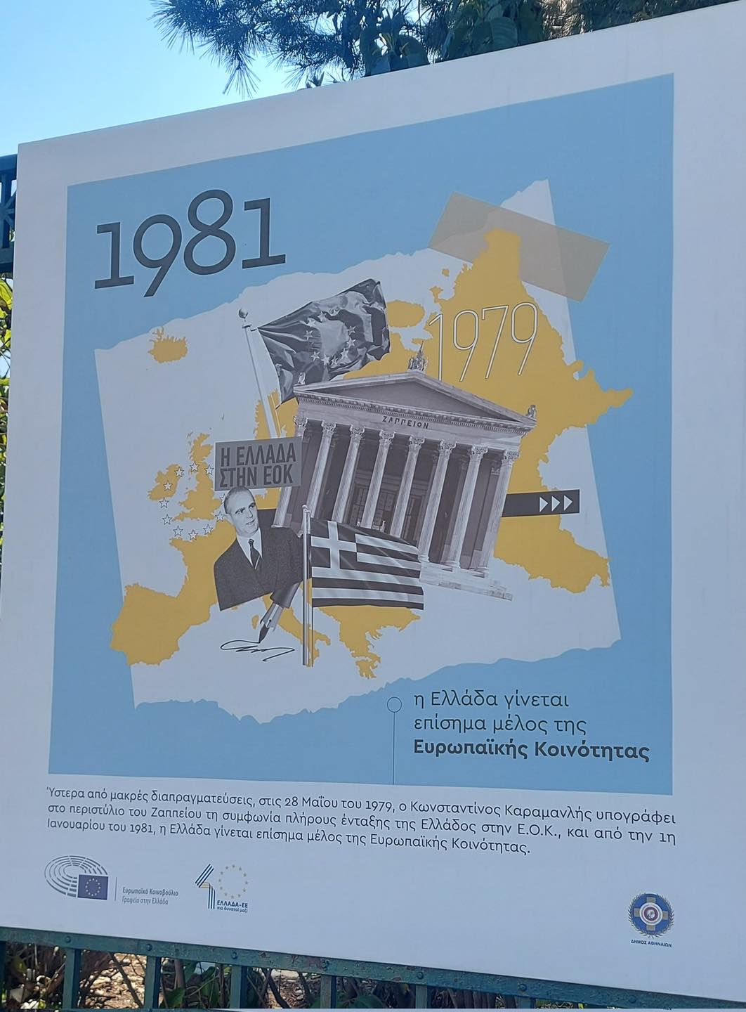 Ο Δήμαρχος Αθηναίων Κώστας Μπακογιάννης, δήλωσε: «Μια αστική δράση εξωστρέφειας του Γραφείου του Ευρωπαϊκού Κοινοβουλίου στην Ελλάδα φιλοξενείται από τον Δήμο Αθηναίων στην περίφραξη του Εθνικού μας Κήπου, στις λεωφόρους Βασιλίσσης Σοφίας και Βασιλίσσης Αμαλίας. Πρόκειται για μία εκδήλωση υψηλού συμβολισμού, η οποία κάνει αναδρομή σε σημαντικά ορόσημα των τελευταίων 40 ετών της χώρας μας, ως μέλος της Ευρωπαϊκής Ένωσης. Μια ανοιχτή έκθεση, που θα ενισχύσει το δημόσιο διάλογο για την πορεία της χώρας μας στην ευρωπαϊκή οικογένεια. Ευελπιστώ ότι το ουσιαστικότερο που θα πετύχει, είναι να αναλογιστούμε όλες και όλοι, πόσα έχουμε κατακτήσει ως Ευρωπαίοι πολίτες, αλλά και ότι η ζωή μας άλλαξε -και συνεχίζει ν’ αλλάζει- προς το καλύτερο τα τελευταία 40 χρόνια».
