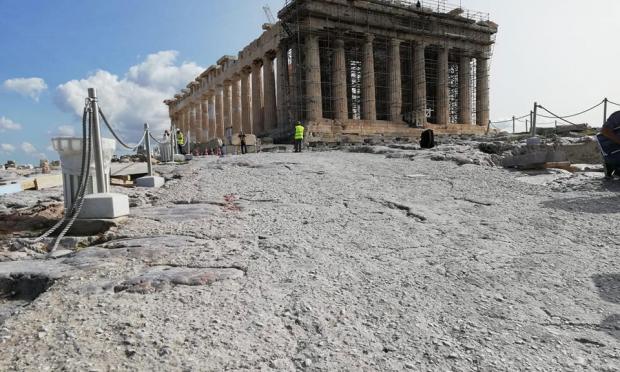 Όπως αναφέρεται στο άρθρο, «κατά τη διάρκεια του δεύτερου lockdown της Ελλάδας και συγκεκριμένα τον Οκτώβριο του 2020, οι οικοδόμοι έφτιαξαν φαρδιά τσιμεντένια μονοπάτια γύρω από την Ακρόπολη. Οι αρμόδιοι για το έργο τόνισαν πως τα μονοπάτια βελτιώνουν την προσβασιμότητα στο ιστορικό αξιοθέατο. Οι επικριτές είπαν ότι προκαλούν πλημμύρες. Ένας ακαδημαϊκός κατηγόρησε τη διοίκηση του χώρου ότι χρησιμοποιεί το λουκέτο ως «προπέτασμα καπνού».
