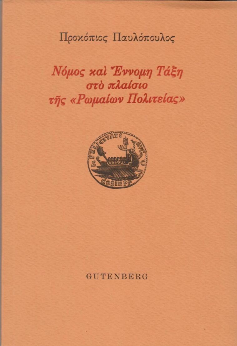 Η νέα μελέτη του Προκόπη Παυλοπούλου για την ιστορική πορεία του Ρωμαϊκού Δικαίου και για την σημασία του στην κατανόηση της σύγχρονης κρίσης της αντιπροσωπευτικής Δημοκρατίας. Κυκλοφόρησε, από τις εκδόσεις «Gutenberg» (2025), στα ελληνικά και στα αγγλικά η νέα μελέτη του πρώην Προέδρου της Δημοκρατίας, ακαδημαϊκού και επίτιμου καθηγητή της Νομικής Σχολής του Πανεπιστημίου Αθηνών Προκόπη Παυλοπούλου με τίτλο: «Νόμος και Έννομη Τάξη στο πλαίσιο της “Ρωμαίων Πολιτείας”» (και «Law and Legal Order in Ancient Rome») (σελ. 152). Η μελέτη αυτή ολοκληρώνει εκείνη του 2023, που εκδόθηκε και πάλι από τον οίκο Gutenberg, με τίτλο: «Θεσμικά “κληροδοτήματα” της ρωμαϊκής “Res Publica” στην σύγχρονη Αντιπροσωπευτική Δημοκρατία.