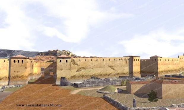 Οι Αθηναίοι ανοικοδόμησαν τα τείχη, υπό τον φόβο ότι θα δέχονταν επίθεση από τον στρατό του Μακεδόνα βασιλιά Φιλίππου Β’. Τα νέα τείχη κατασκευάστηκαν εξ’ ολοκλήρου από πέτρα και ήταν λίγο ψηλότερα από τα προηγούμενα. Διέθεταν τάφρο βάθους 4 μέτρων και πλάτους 9-12,5 μέτρων. Συνολικά είχαν 13 μεγάλες πύλες εκ των οποίων η πιο γνωστή ήταν το «Δίπυλον», το οποίο βρισκόταν στον Κεραμεικό και ήταν η κύρια είσοδος στην πόλη. Εντός των τειχών βρίσκονταν τα σπίτια και τα ιερά και εκτός των τειχών τα γυμνάσια της πόλης και τα νεκροταφεία.