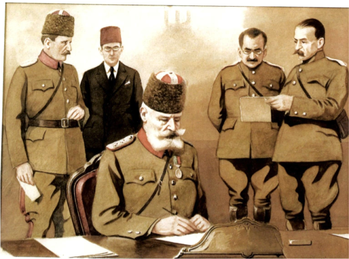 Ο Ταξίν Πασάς υπογράφει τα πρωτόκολλα παράδοσης της Θεσσαλονίκης.
