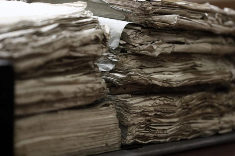 Ο αρχειακός «θησαυρός» εντοπίστηκε σε ένα κλειστό -για δεκαετίες- μικρό καμαράκι, πίσω από την αίθουσα τα Γερουσίας, μεταξύ του δεύτερου και τρίτου ορόφου.