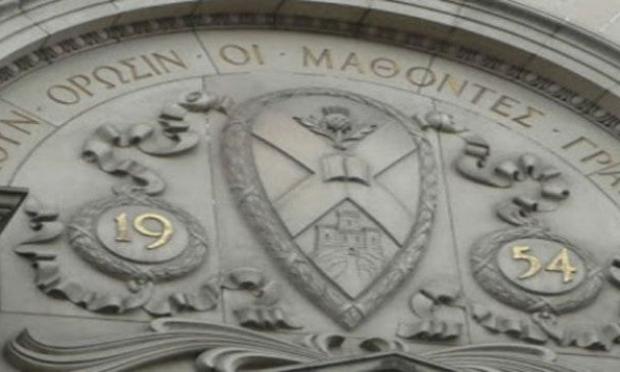 2) ΔΙΠΛΟΥΝ ΟΡΩΣΙΝ ΟΙ ΜΑΘΟΝΤΕΣ ΓΡΑΜΜΑΤΑ «Διπλά βλέπουν αυτοί που γνωρίζουν γράμματα». Στην είσοδο στο κτίριο της γραμματείας του Πανεπιστημίου του Εδιμβούργου.