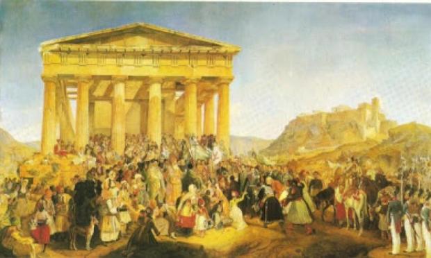 Οι Αρβανίτες είχαν κατεβεί με τις σημαίες τους από τα βουνά τους, οι αγρότες της περιοχής έκαναν παρέλαση με τα νταούλια και το ζουρνά τους αθρόοι στην πόλη, οι συντεχνίες με τα λάβαρα των επαγγελμάτων τους άφηναν χαρούμενοι τις μεταξένιες σημαιούλες τους να κυματίζουν στον αέρα.