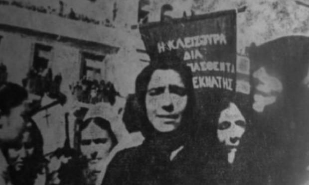 Γυναίκες από την Κλεισούρα θρηνούν για τους νεκρούς σε συγκέντρωση στη Θεσσαλονίκη, τον Νοέμβριο του 1944...