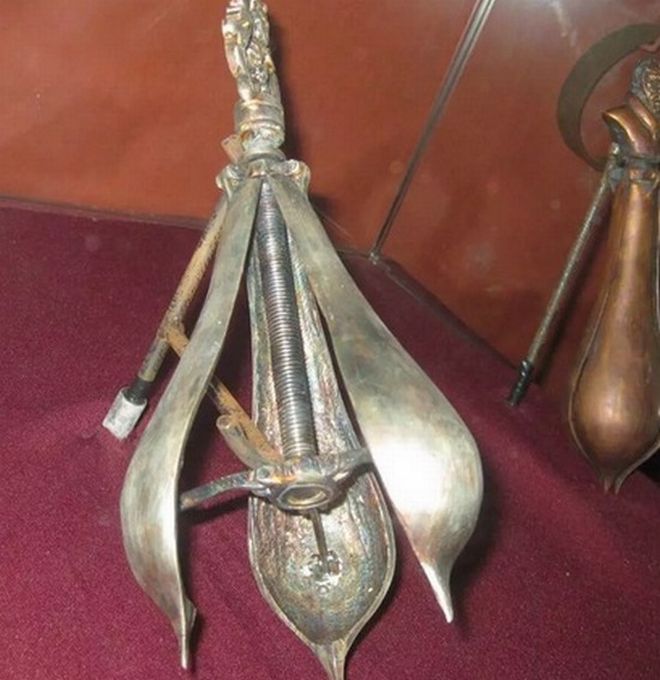 Ο τιμωρός του μαστού: όργανο βασανισμού αποκλειστικά και μόνο για γυναίκες. Εάν είχε μια γυναίκα μια κρεατοελιά χαμηλά στην κοιλιά ήταν ερωμένη του σατανά και έπρεπε να βασανιστεί, εάν μια γυναίκα είχε παράνομο δεσμό, ή ο άνδρας της δεν την βρήκε παρθένα την πρώτη νύχτα του γάμου, είχε δικαίωμα να χρησιμοποιήσει τον τιμωρό. Μεταλλικό αντικείμενο με δόντια που έκλεινε γύρω από τον μαστό. Εάν το θύμα δεν πέθαινε τότε έμενε για πάντα σημαδεμένο στην καλύτερη περίπτωση και ακρωτηριασμένο. Με περίσσιο σαδισμό οι βασανιστές πολλές φορές πύρωναν το όργανο πριν το χρησιμοποιήσουν στην ευαίσθητη επιδερμίδα.