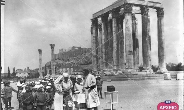 Μέσα από μια σπάνια φωτογραφία του 1924 από το αρχείο της ΕΡΤ, μαθαίνουμε πως γινόντουσαν οι εξετάσεις των παιδιών από την Μικρά Ασία. Τι παρατηρούμε; Ορφανά προσφυγόπουλα από τη Μικρά Ασία κατά τη διάρκεια υπαίθριας ιατρικής εξέτασης μπροστά στους στύλους του Ολυμπίου Διός.
