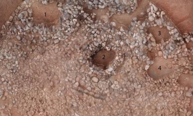 Εντός του κύκλου από ασβεστόλιθους, διαμέτρου 15μ., ανασκάφηκαν τρεις κυκλικοί λάκκοι, που περιείχαν τα κατάλοιπα ταφών και ταφικών πυρών