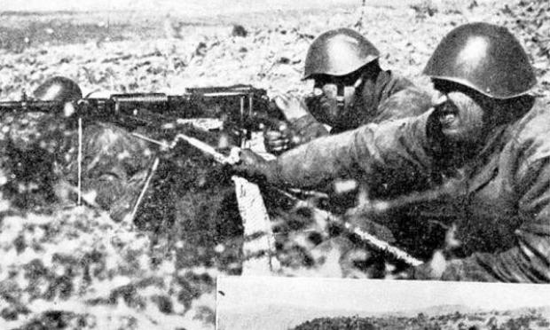 Όταν έφτασαν κοντά διέταξε "πυρ" και οι Έλληνες φαντάροι γάζωσαν τους Ιταλούς με χειροβομβίδες, πολυβόλα και αυτόματα.