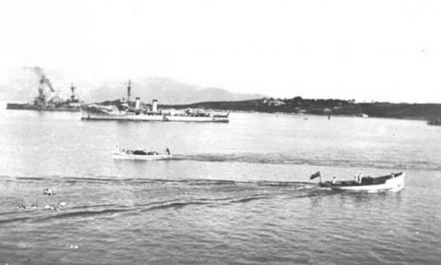 Το ελαφρό καταδρομικό ΕΛΛΗ, το οποίο τορπιλλίστικε στην Τήνο το 1940, αγκυροβολημένο στα κερκυραϊκά νερά