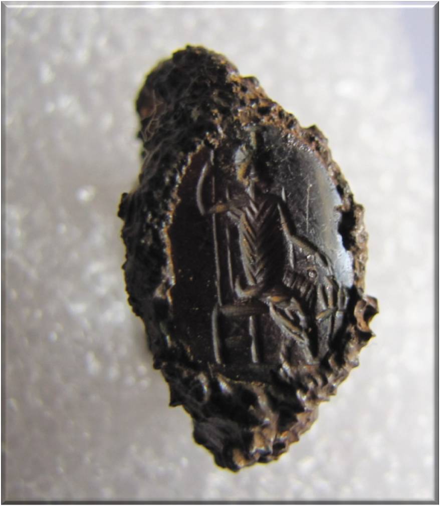 Σιδερένιο δαχτυλίδι ρωμαϊκών χρόνων. Φέρει σφραγιδόλιθο με απεικόνιση Σαράπιδος καθήμενου σε θρόνο που συνοδεύεται από τον Κέρβερο
