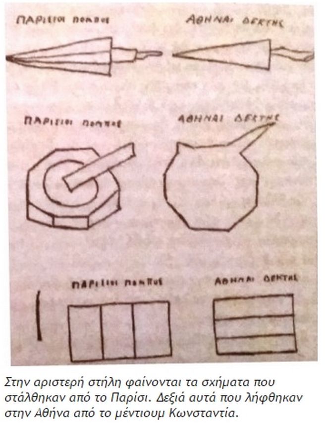 Επίσης, ο ακαδημαϊκός Warcolier είχε οραματιστεί ένα μικρό κόκκινο κύκλο. Αντίστοιχα, στην Αθήνα τα μέντιουμ είχαν οραματιστεί από τις σκέψεις των Γάλλων, τριγωνικά σχήματα, διαβήτες ή ακόμη και το γράμμα Α. Το μέντιουμ Κωνσταντία όμως, είδε το σχήμα ενός στέμματος (δηλαδή το θυρεό). Το πείραμα για τη μεταβίβαση σκέψης είχε στεφτεί από απόλυτη επιτυχία.