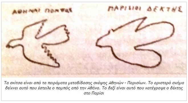 Σκοπός των δύο ομάδων ήταν να κάνουν ένα πείραμα τηλεπάθειας, μεταξύ Παρισίων και Αθήνας. Η Αθήνα έστειλε με τους πομπούς της, δηλαδή με τις σκέψεις των μέντιουμ, διάφορα σχήματα. Ένα κόκκινο κύκλο με διάμετρο 26 εκατοστά και πάχος 10, ενώ από το Παρίσι έστειλαν από τους διάμεσους μια τριγωνική σφραγίδα που έφερε έναν θυρεό. Ταυτόχρονα, τα άτομα δέκτες, σε κατάσταση ύπνωσης προσπαθούσαν να οραματιστούν τα σχήματα που έστελναν οι αντίστοιχοι πομποί, δηλαδή τα μέντιουμ.
