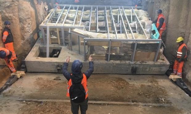 Σκοπός των αρχαιολόγων όσο και των μηχανικών ήταν να βγει ολόσωμη η κατασκευή ξεπερνώντας τις υπερκείμενες μεταλλικές αντηρίδες (μεγάλες καφέ σωλήνες) που στηρίζουν τον ομώνυμο σταθμό και δεν μπορούσαν να αφαιρεθούν γιατί θα δημιουργούνταν ζητήματα στατικότητας.