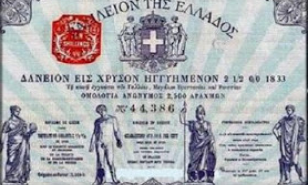 “Το καλοκαίρι του 1843, η Ελλάδα έπρεπε να καταβάλει στις τράπεζες της Ευρώπης τα τοκοχρεολύσια παλιότερων δανείων που είχε πάρει η χώρα. Δυστυχώς τα λεφτά δεν είχαν πάει σε υποδομές που θα βοηθούσαν την κατεστραμένη Ελληνική οικονομία, αλλά είχαν σπαταληθεί στους εμφυλίους της επανάστασης και στα λούσα του παλατιού και των Βαυαρών συμβούλων του στέμματος.