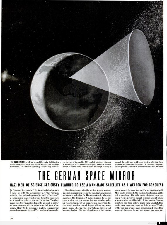 Ένα γιγάντιο κάτοπτρο σε τροχιά φαντάζει ως επιστημονική φαντασία. Θα μπορούσε όμως να υπάρξει; Η απάντηση είναι ναι. Σύμφωνα με άρθρο του περιοδικού Life που δημοσιεύτηκε το 1945 Αμερικανοί ειδικοί που βρέθηκαν στη Γερμανία μετά το πέρας του πολέμου κατέληξαν στο συμπέρασμα ότι οι Γερμανοί είχαν κάνει βήματα να δημιουργήσουν ένα “ηλιακό πυροβόλο”.