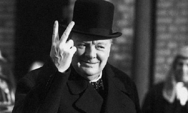O Ουίνστον Τσόρτσιλ κάνει το σήμα της νίκης τον Νοέμβριο του 1945 στην Αμβέρσα (Φωτογραφία αρχείου: ΑΡ)