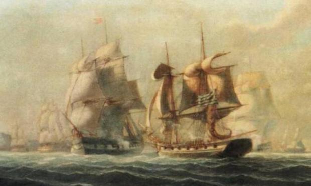 Αυτοί, χωρίς αναβολήν καιρού, ηθέλησαν να πέσουν επάνω της. Και επειδή ο άνεμος ήτο δυνατός, με το πέρασμα ενός πλοίου ερρίφθησαν 26 Έλληνες μέσα εις την κορβέτταν, η οποία είχε 90 Τούρκους και 20 ραγιάδες Έλληνας.