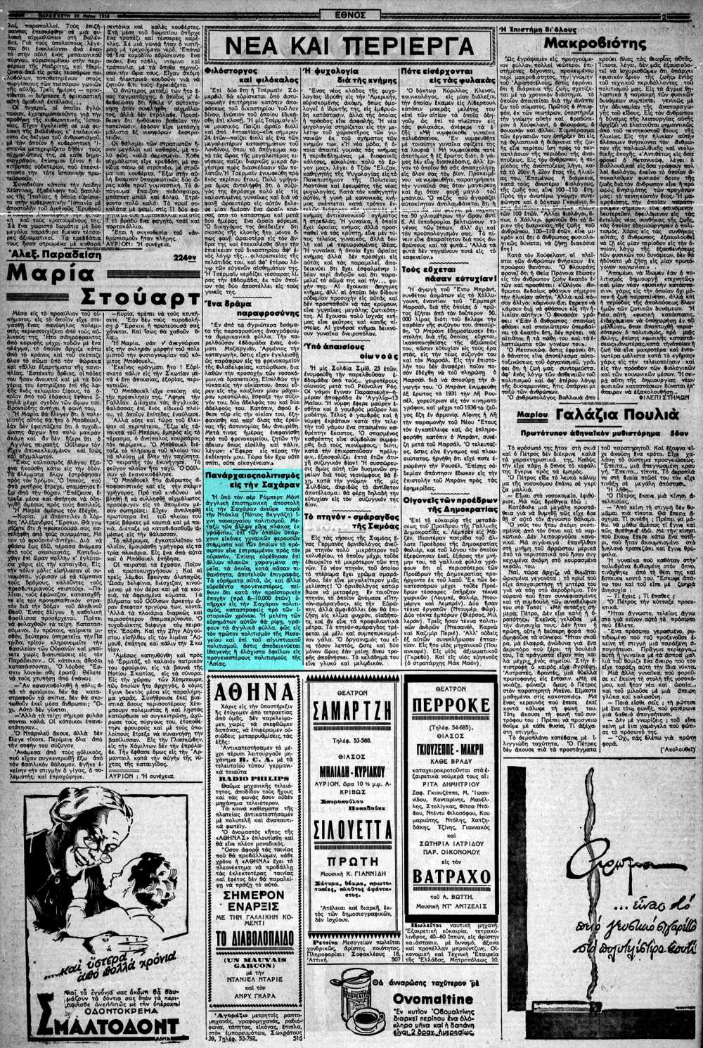 Η είδηση δημοσιεύθηκε στην εφημερίδα «ΕΘΝΟΣ», στις 20/05/1938