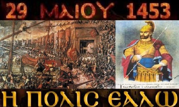 1453 Η άλωση της Κωνσταντινούπολης. Έπειτα από πολιορκία ενός χρόνου από τους Οθωμανούς Τούρκους, “Η Πόλις εάλω”.
