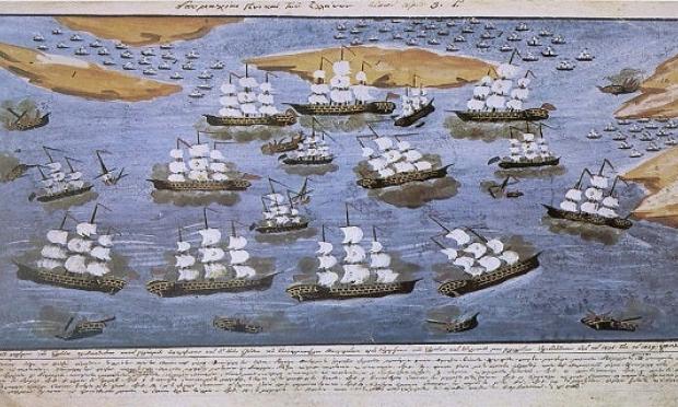 Στις 4 Αυγούστου κατέπλευσε ο Οθωμανικός στόλος κατά του Ελληνικού. 17 πλοία με τον αντιναύαρχο και τον Κανάρη με το πυρπολικό του όρμησαν πάνω στον εχθρό και ναυμάχησαν επί πέντε ώρες, μέχρι που ανάγκασαν τον εχθρό να απομακρυνθεί. Ο Οθωμανικός στόλος μάταια αποπειράθηκε να κινηθεί και τις επόμενες μέρες. Η αγκυροβολια των Ελλήνων συνεχίστηκε για πέντε εβδομάδων χωρίς αποτέλεσμα, και μετά αποχώρησαν.