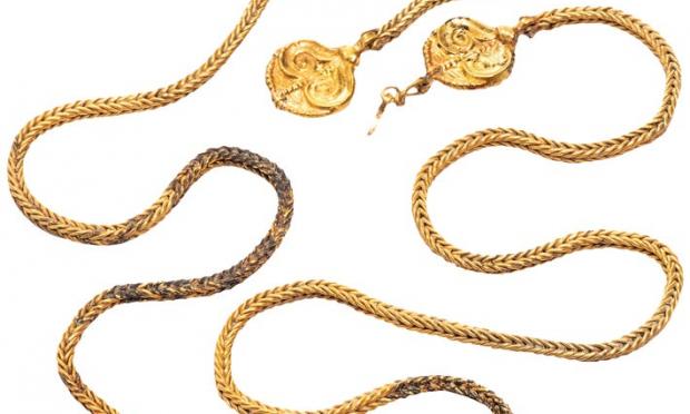 Μινωικό χρυσό περιδέραιο με τρεις χάντρες.