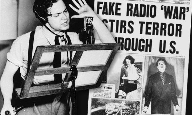 Ο ιδιοφυής Αμερικανός σκηνοθέτης και ηθοποιός ήταν τότε 23 χρονών, όταν του ζητήθηκε να διασκευάσει για το ραδιόφωνο το μυθιστόρημα επιστημονικής φαντασίας του Άγγλου συγγραφέα Χέρμπερτ Τζορτζ Γουέλς «Ο πόλεμος των κόσμων», ένα από τα πρώτα λογοτεχνικά έργα, που περιγράφει με λεπτομέρειες μία σύγκρουση του ανθρώπου με τους εξωγήινους. Παρότι είχε σημαντική προϋπηρεσία στο μέσο, ούτε ο ίδιος δεν φαντάστηκε τον αντίκτυπο που θα είχε η παράστασή του εκείνο το κυριακάτικο βράδυ της 30ης Οκτωβρίου 1938, παραμονή της γιορτής του Χάλογουιν.